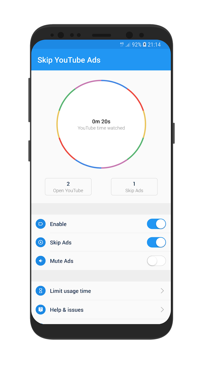 This app does what it says. It automatically skips those 5 seconds youtube ads in the start of a video. So you don't have to press the skip ads button. Although you have to give some required permission to the app to do this. If you're so lazy that you can not even press the skip button then this app is for you. You have to keep this app running in the background in order to make it work.